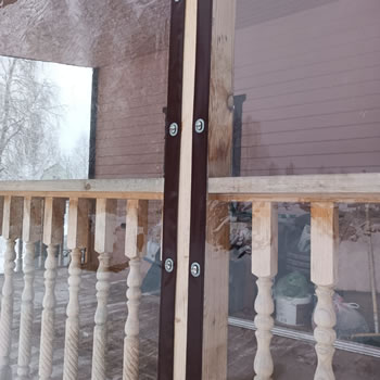 Мы рекомендуем для треугольных проемов использовать стационарные крепления — люверсы, отверстия. Как показывает практика, такие проемы пользователи мягких окон не демонтируют круглый год.