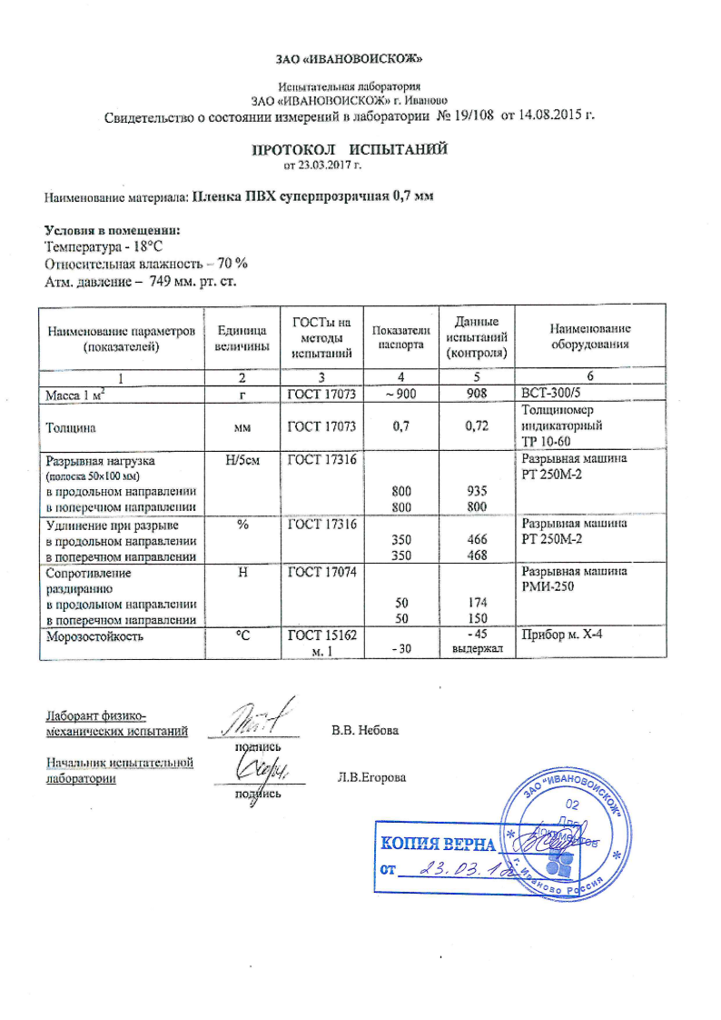 Протокол испытаний