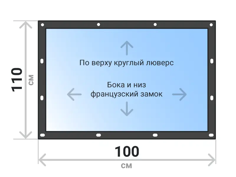 Мягкое окно съемное из прозрачной ПВХ пленки 700 микрон на французских замках по бокам и низу. По верхнему краю круглый люверс. Расстояние между креплениями 30-40 см. Полностью готовый к установке комплект, включая саморезы и ремни для скрутки.
