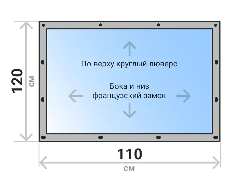 Мягкое окно съемное из прозрачной ПВХ пленки 700 микрон на французских замках по бокам и низу. По верхнему краю круглый люверс. Расстояние между креплениями 30-40 см. Полностью готовый к установке комплект, включая саморезы и ремни для скрутки.