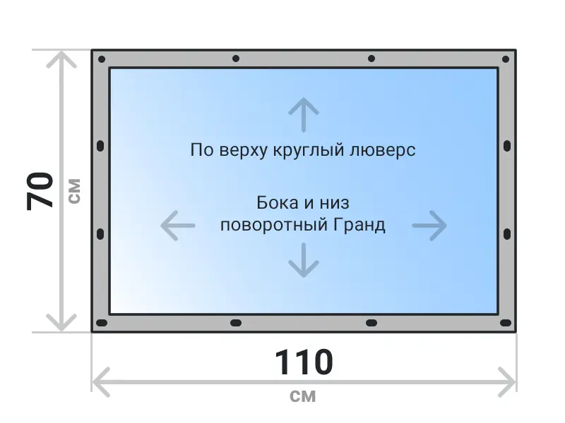 Мягкое окно съемное из прозрачной ПВХ пленки 700 микрон на поворотных скобах Гранд Лок по бокам и низу. По верхнему краю круглый люверс. Расстояние между креплениями 30-40 см. Полностью готовый к установке комплект, включая саморезы и ремни для скрутки.