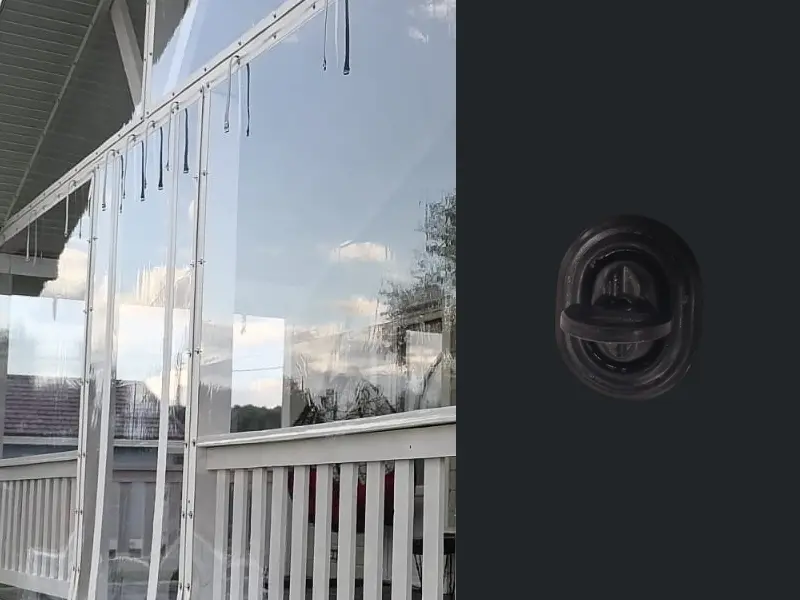 Мягкое окно съемное из прозрачной ПВХ пленки 700 микрон на французских замках по бокам и низу. По верхнему краю круглый люверс. Расстояние между креплениями 30-40 см. Полностью готовый к установке комплект, включая саморезы и ремни для скрутки.