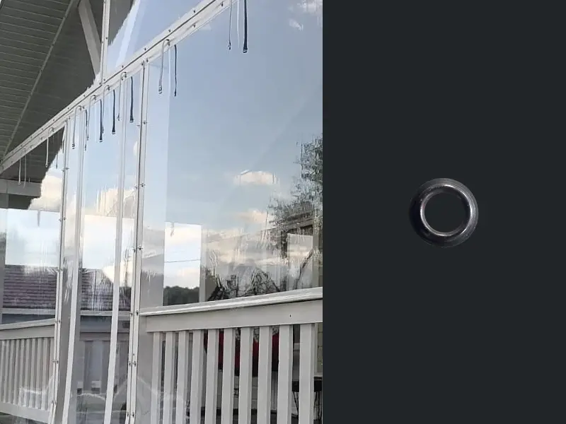 Мягкое окно глухое несъемное из прозрачной ПВХ пленки 700 микрон на круглых люверсах по периметру. Расстояние между креплениями 30-40 см. Полностью готовый к установке комплект, включая саморезы.
