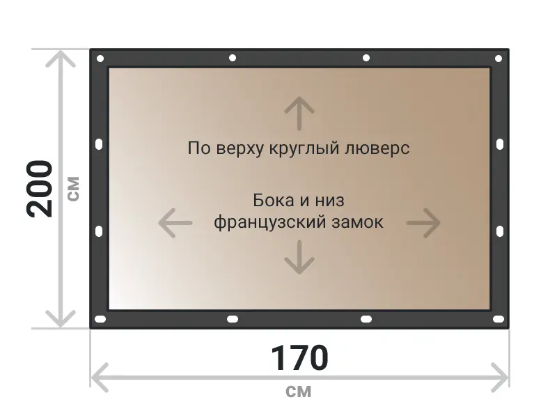 Мягкое окно съемное из тонированной ПВХ пленки 700 микрон на французских замках по бокам и низу. По верхнему краю круглый люверс. Расстояние между креплениями 30-40 см. Полностью готовый к установке комплект, включая саморезы и ремни для скрутки.