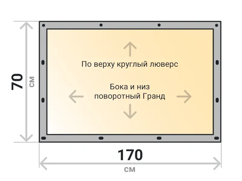 Мягкое окно съемное из прозрачной ТПУ пленки 500 микрон на поворотных скобах Гранд Лок по бокам и низу. По верхнему краю круглый люверс. Расстояние между креплениями 30-40 см. Полностью готовый к установке комплект, включая саморезы и ремни для скрутки.