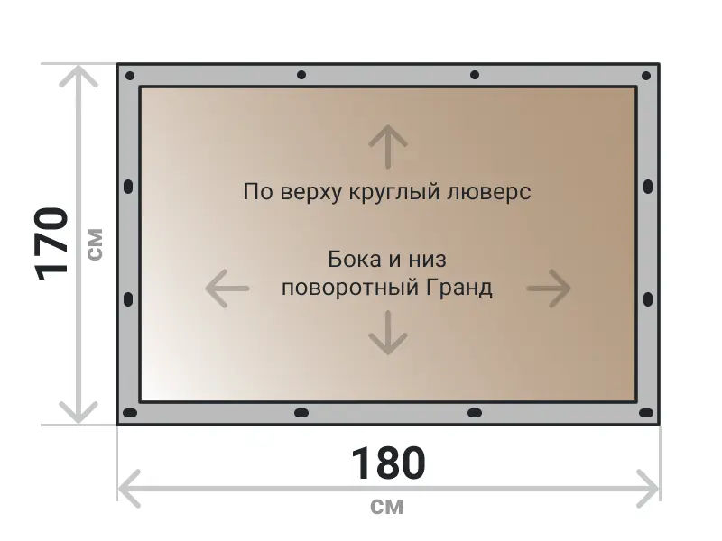 Мягкое окно съемное из тонированной ПВХ пленки 700 микрон на поворотных скобах Гранд Лок по бокам и низу. По верхнему краю круглый люверс. Расстояние между креплениями 30-40 см. Полностью готовый к установке комплект, включая саморезы и ремни для скрутки.