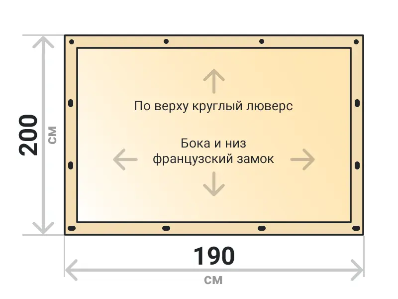 Мягкое окно съемное из прозрачной ТПУ пленки 500 микрон на французских замках по бокам и низу. По верхнему краю круглый люверс. Расстояние между креплениями 30-40 см. Полностью готовый к установке комплект, включая саморезы и ремни для скрутки.