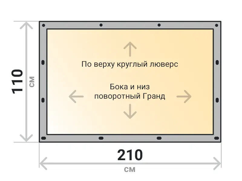 Мягкое окно съемное из прозрачной ТПУ пленки 500 микрон на поворотных скобах Гранд Лок по бокам и низу. По верхнему краю круглый люверс. Расстояние между креплениями 30-40 см. Полностью готовый к установке комплект, включая саморезы и ремни для скрутки.