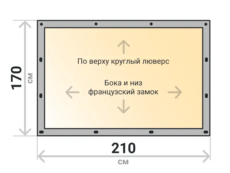 Мягкое окно съемное из прозрачной ТПУ пленки 500 микрон на французских замках по бокам и низу. По верхнему краю круглый люверс. Расстояние между креплениями 30-40 см. Полностью готовый к установке комплект, включая саморезы и ремни для скрутки.