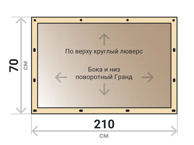 Мягкое окно съемное из тонированной ПВХ пленки 700 микрон на поворотных скобах Гранд Лок по бокам и низу. По верхнему краю круглый люверс. Расстояние между креплениями 30-40 см. Полностью готовый к установке комплект, включая саморезы и ремни для скрутки.