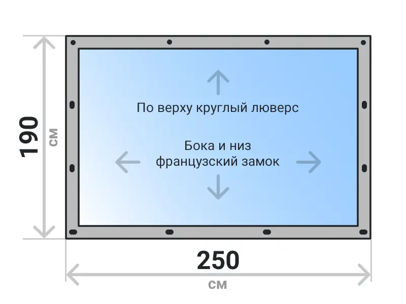 Мягкое окно съемное из прозрачной ПВХ пленки 700 микрон на французских замках по бокам и низу. По верхнему краю круглый люверс. Расстояние между креплениями 30-40 см. Полностью готовый к установке комплект, включая саморезы и ремни для скрутки.