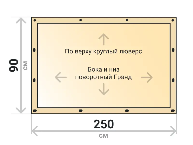 Мягкое окно съемное из прозрачной ТПУ пленки 500 микрон на поворотных скобах Гранд Лок по бокам и низу. По верхнему краю круглый люверс. Расстояние между креплениями 30-40 см. Полностью готовый к установке комплект, включая саморезы и ремни для скрутки.