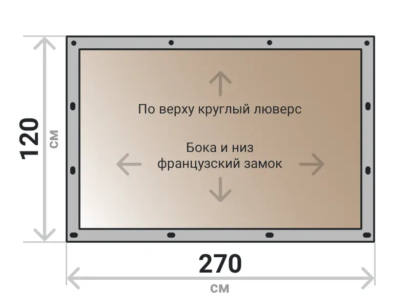 Мягкое окно съемное из тонированной ПВХ пленки 700 микрон на французских замках по бокам и низу. По верхнему краю круглый люверс. Расстояние между креплениями 30-40 см. Полностью готовый к установке комплект, включая саморезы и ремни для скрутки.