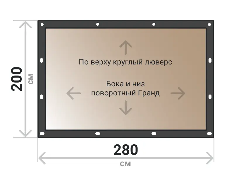 Мягкое окно съемное из тонированной ПВХ пленки 700 микрон на поворотных скобах Гранд Лок по бокам и низу. По верхнему краю круглый люверс. Расстояние между креплениями 30-40 см. Полностью готовый к установке комплект, включая саморезы и ремни для скрутки.