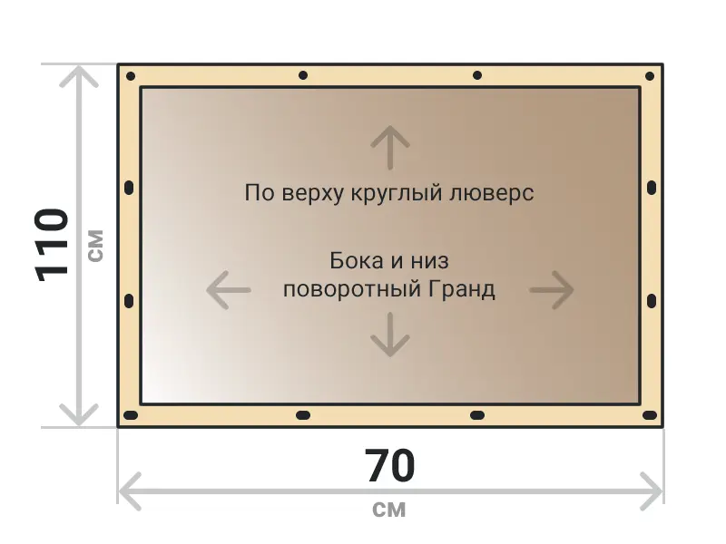 Мягкое окно съемное из тонированной ПВХ пленки 700 микрон на поворотных скобах Гранд Лок по бокам и низу. По верхнему краю круглый люверс. Расстояние между креплениями 30-40 см. Полностью готовый к установке комплект, включая саморезы и ремни для скрутки.