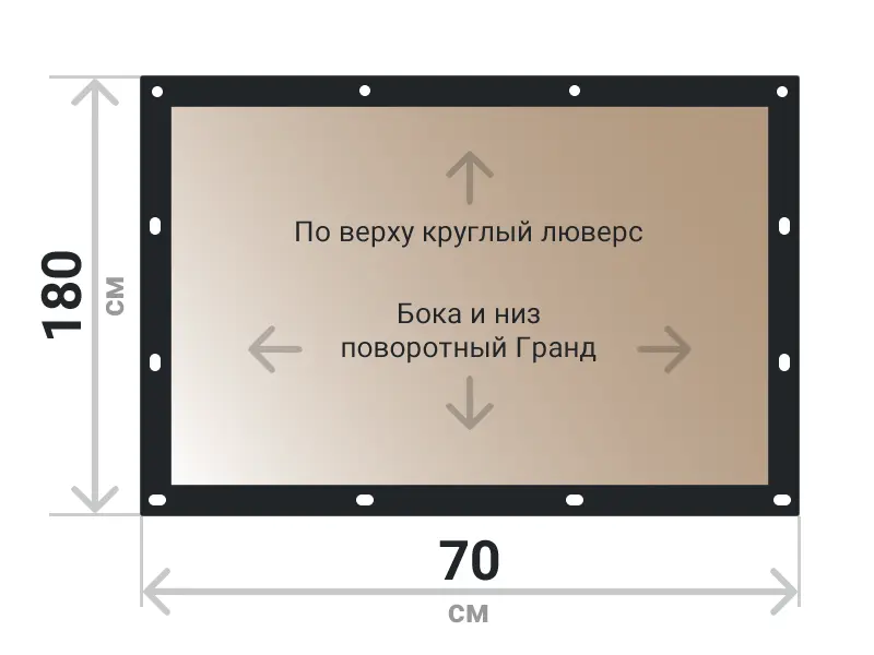 Мягкое окно съемное из тонированной ПВХ пленки 700 микрон на поворотных скобах Гранд Лок по бокам и низу. По верхнему краю круглый люверс. Расстояние между креплениями 30-40 см. Полностью готовый к установке комплект, включая саморезы и ремни для скрутки.