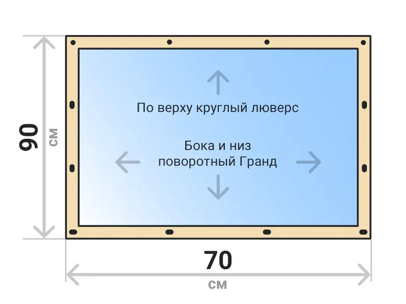 Мягкое окно съемное из прозрачной ПВХ пленки 700 микрон на поворотных скобах Гранд Лок по бокам и низу. По верхнему краю круглый люверс. Расстояние между креплениями 30-40 см. Полностью готовый к установке комплект, включая саморезы и ремни для скрутки.