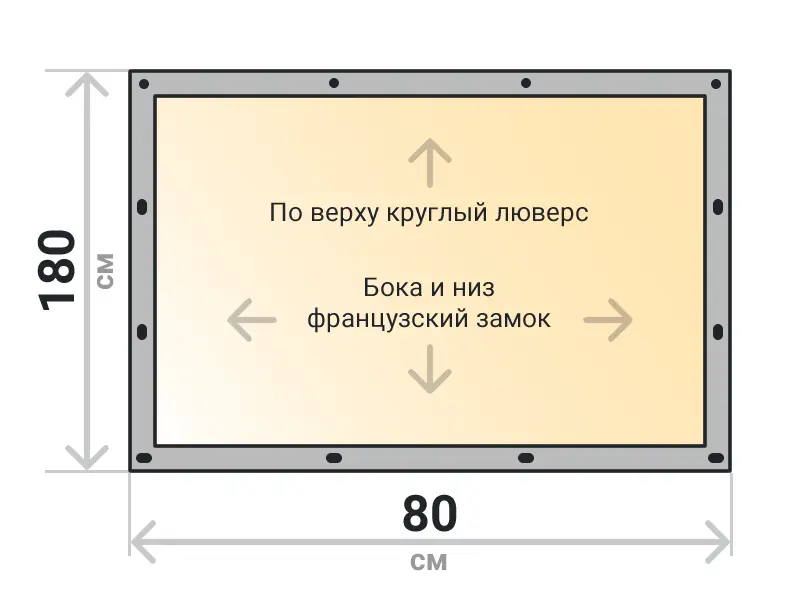 Мягкое окно съемное из прозрачной ТПУ пленки 500 микрон на французских замках по бокам и низу. По верхнему краю круглый люверс. Расстояние между креплениями 30-40 см. Полностью готовый к установке комплект, включая саморезы и ремни для скрутки.