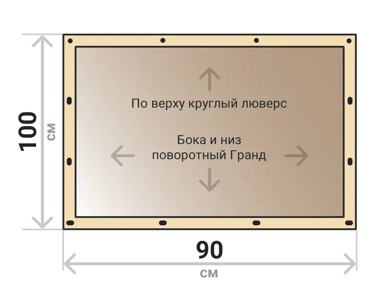 Мягкое окно съемное из тонированной ПВХ пленки 700 микрон на поворотных скобах Гранд Лок по бокам и низу. По верхнему краю круглый люверс. Расстояние между креплениями 30-40 см. Полностью готовый к установке комплект, включая саморезы и ремни для скрутки.