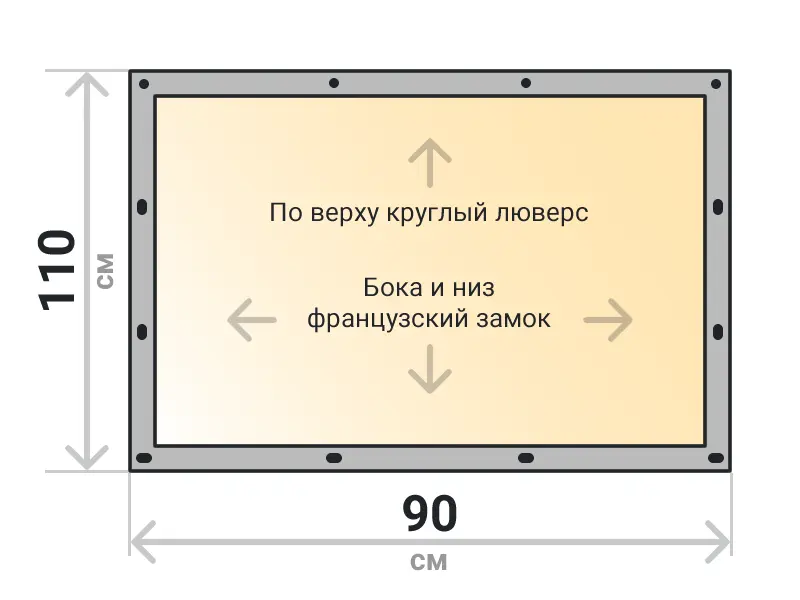 Мягкое окно съемное из прозрачной ТПУ пленки 500 микрон на французских замках по бокам и низу. По верхнему краю круглый люверс. Расстояние между креплениями 30-40 см. Полностью готовый к установке комплект, включая саморезы и ремни для скрутки.