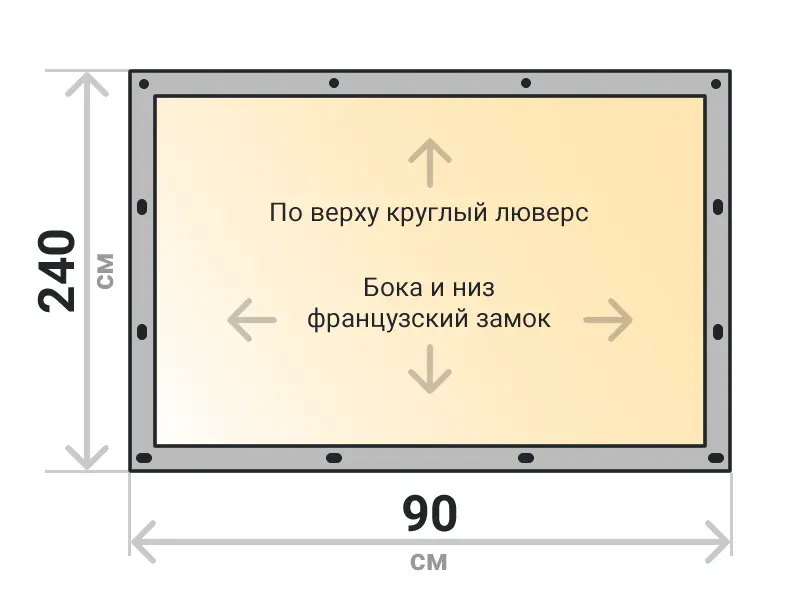 Мягкое окно съемное из прозрачной ТПУ пленки 500 микрон на французских замках по бокам и низу. По верхнему краю круглый люверс. Расстояние между креплениями 30-40 см. Полностью готовый к установке комплект, включая саморезы и ремни для скрутки.