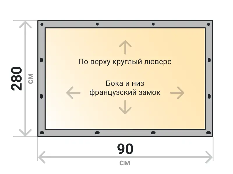 Мягкое окно съемное из прозрачной ТПУ пленки 500 микрон на французских замках по бокам и низу. По верхнему краю круглый люверс. Расстояние между креплениями 30-40 см. Полностью готовый к установке комплект, включая саморезы и ремни для скрутки.